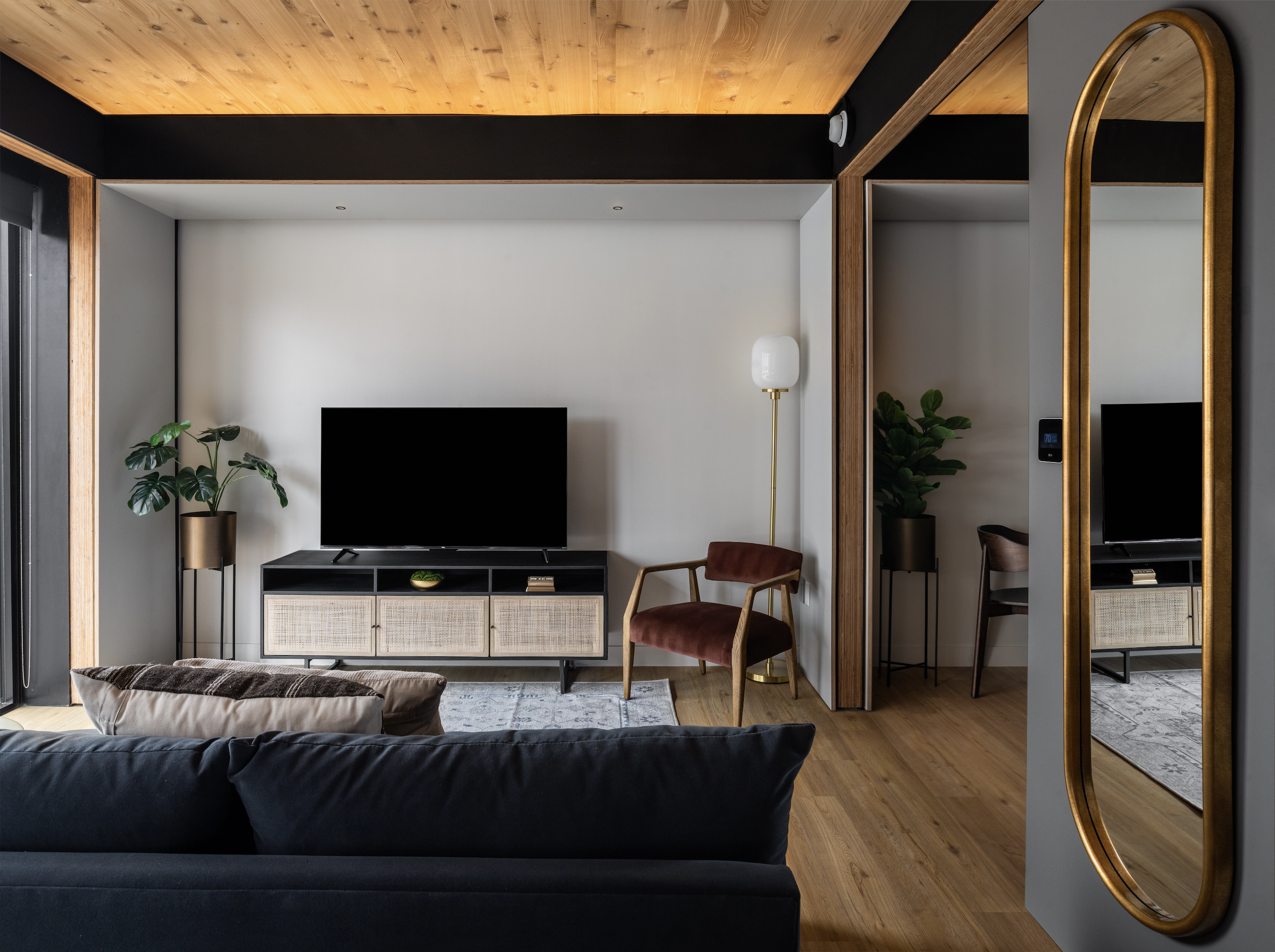 By layering in furniture, textiles, and details tailored to the space, we created a residential experience that feels modern, intentional, and inviting—seamlessly blending with the building’s architectural ethos.