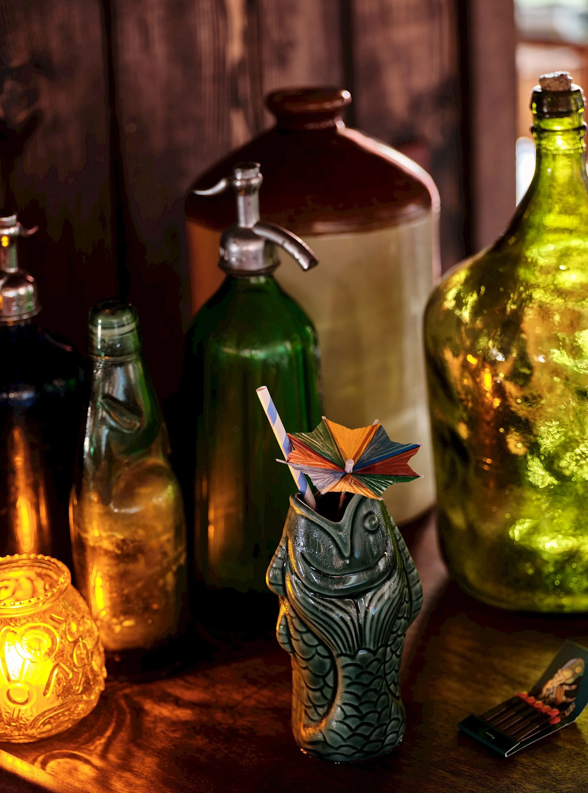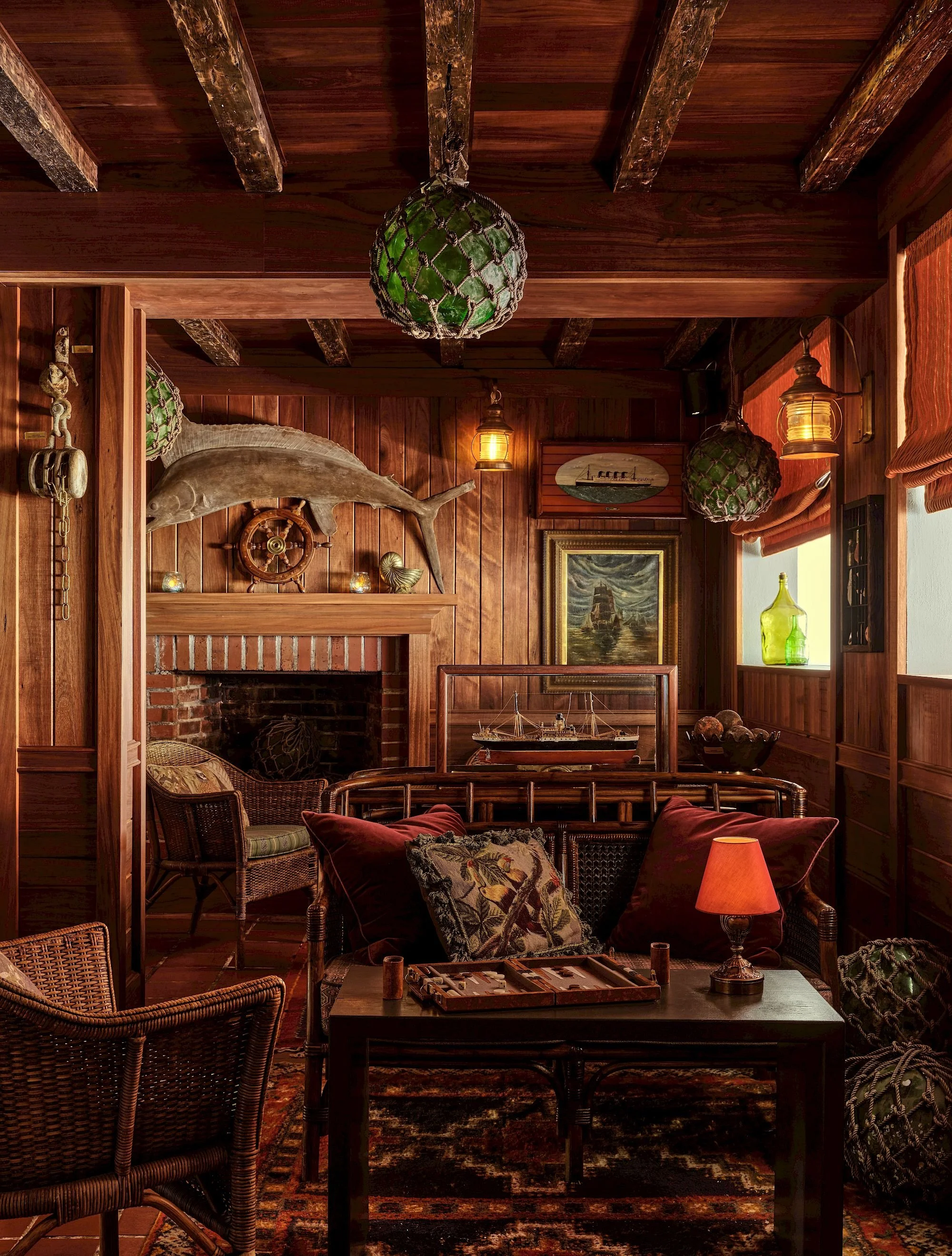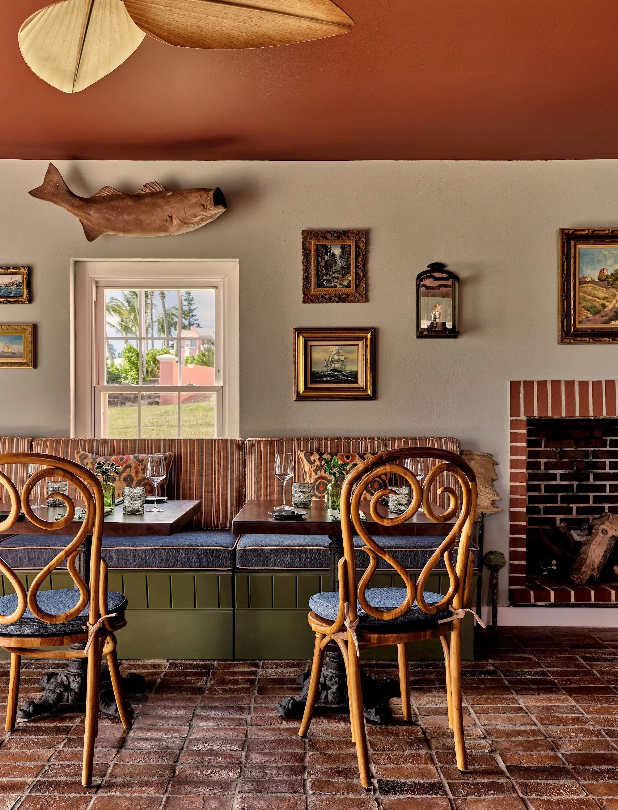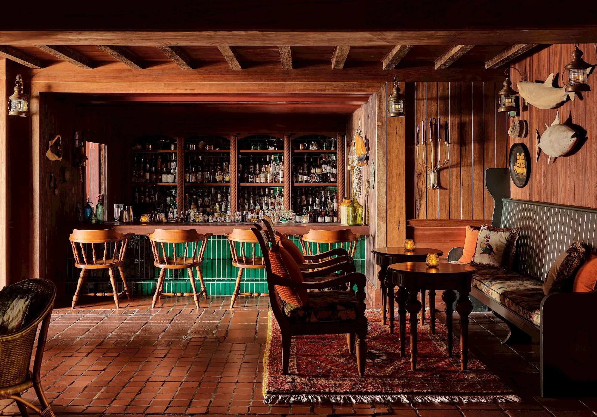 Sunken Harbor Club is a dockside tavern and tropical cocktail bar at Cambridge Beaches resort overlooking Mangrove Bay.